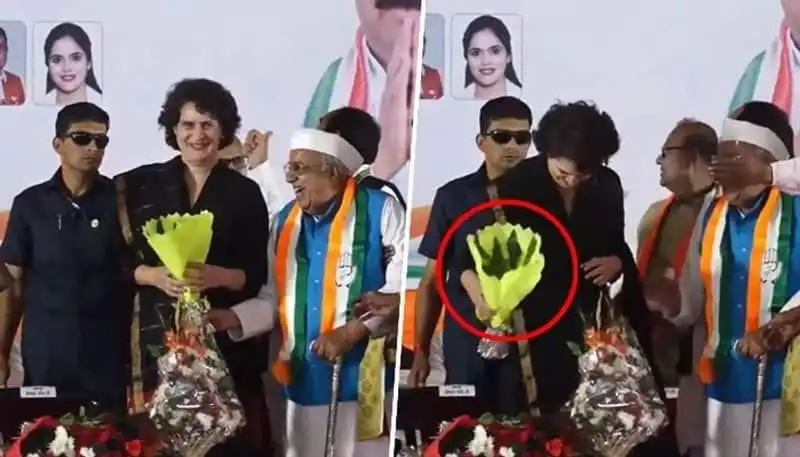 என்ன இது மரியாதை நிமித்தமாக கொடுக்கப்பட்டது இப்படியாகிவிட்டதே என்று மேடையில் இருந்த நிர்வாகிகள் பதறிப்போக பிரியங்கா காந்தி மட்டும் விழுந்து விழுந்து சிரித்துக் கொண்டிருந்தார். இந்த சம்பவத்தை பிரியங்கா காந்தி  தவறாக எடுத்துக் கொள்ளவில்லை என்று உணர்ந்த பின்னர்தான் காங்கிரஸ் நிர்வாகிகள் நிம்மதி பெருமூச்சுவிட்டனர். இந்த வீடியோ தற்போது இணையத்தில் வைரலாகி வருகிறது.