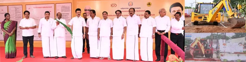 மதுரையில் கோரிப்பாளையம் மற்றும் அப்போலோ சந்திப்பு ஆகிய இடங்களில் உயர்மட்ட மேம்பால கட்டுமானப் பணிகளை முதலமைச்சர் மு.க.ஸ்டாலின் தொடங்கி வைத்தார்.
