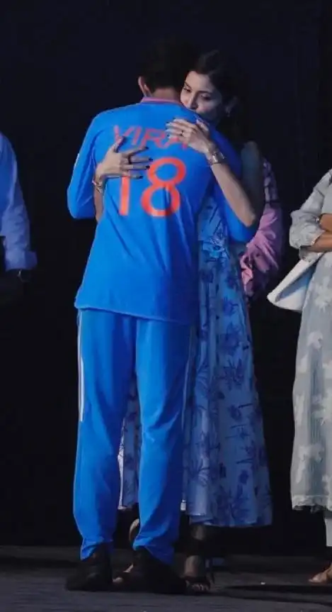 போட்டியை பார்த்துக் கொண்டிருந்த விராட் கோலியின் மனைவி அனுஷ்கா ஷர்மாவும் கவலை தோய்ந்த முகத்துடன் காணப்பட்டார். பின்னர் தோல்வியால் துவண்டு போயிருந்த விராட் கோலியை, அவரது மனைவி அனுஷ்கா கட்டியணைத்து ஆறுதல் சொன்ன புகைப்படம் தற்போது இணையத்தில் வைரலாகி வருகிறது.