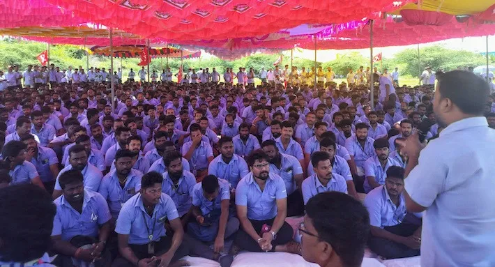 காஞ்சீபுரம் மாவட்டம் சுங்குவார்சத்திரத்தில் இயங்கி வருகிறது சாம்சங் தொழிற்சாலை. அங்கு பணியாற்றி வரும் பணியாளர்கள் 8 மணிநேர வேலை, ஊதிய உயர்வு உள்ளிட்ட கோரிக்கைகளை வலியுறுத்தி கடந்த சில வாரங்களாக வேலை நிறுத்த போராட்டத்தில் ஈடுபட்டு வந்தனர். பந்தல் அமைத்து வேலை நிறுத்த போராட்டத்தில் ஈடுபட்டு வந்த தொழிலாளர்களிடம் பல்வேறுகட்ட பேச்சுவார்த்தை நடத்தப்பட்டும் எந்த சுமூகமான முடிவும் எட்டப்படவில்லை என்று கூறப்படுகிறது.