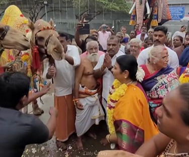 அதேநேரம், துர்கா ஸ்டாலினும் சேகர் பாபுவும் கோயில் கோயிலாக சுற்றித் திரிகிறார்கள். கார்த்திகை தீபம் விளக்கு ஏற்றுவதை தடுத்த காரணத்தால் ஸ்டாலினுக்கு தோஷம் வந்துவிட்டதாம். இதைத் தடுப்பதற்காக ஒட்டகத்துக்குப் பூஜை செய்திருக்கிறார் துர்கா ஸ்டாலின்.