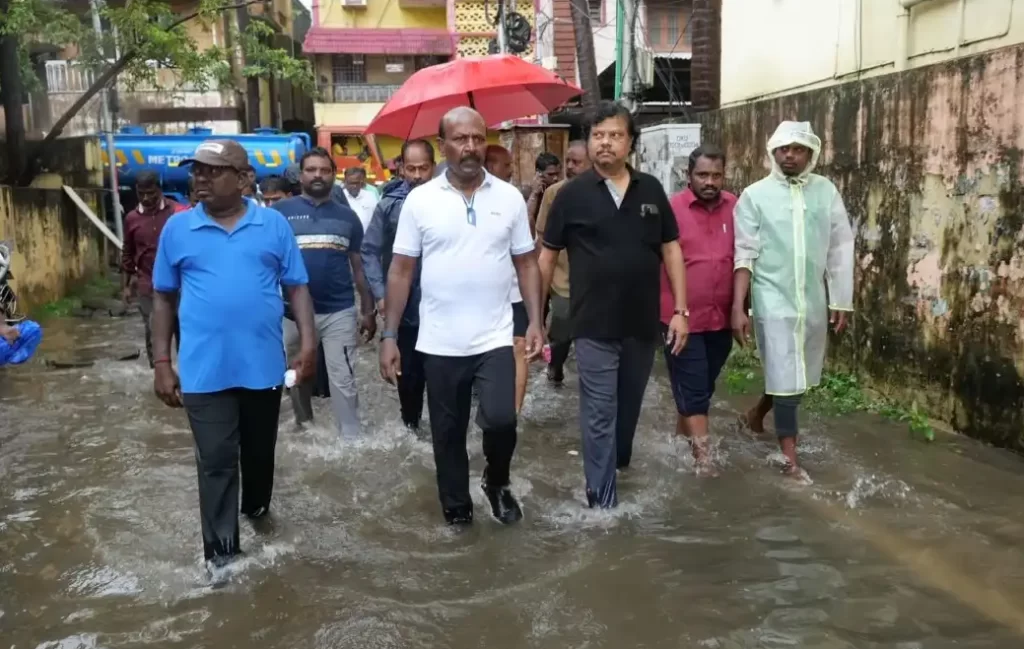 அதேபோல் சென்னை பேசின்பிரிட்ஜ் யானைகவுனி பகுதியில் அமைச்சர் சேகர்பாபு களத்தில் நேராக சென்று ஆய்வு மேற்கொண்டார். உடன் பெருநகர சென்னை மேயர் பிரியா, அரசு உயர் அதிகாரிகள் உள்ளிட்டோர் கலந்து கொண்டனர்.