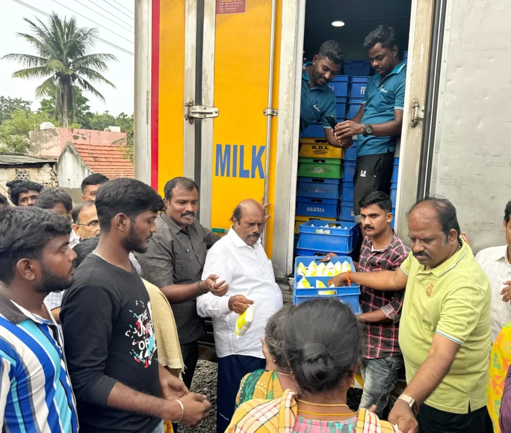 அந்த வகையில் தூத்துக்குடி மாவட்டம் மாதவன் நகரில் மழைவெள்ளத்தால் பாதிக்கப்பட்ட பொது மக்களுக்கு பால் பாக்கெட்டுகளை வழங்கினார். அப்போது சட்டமன்ற உறுப்பினர் வசந்தம் கார்த்திகேயன், நெடுஞ்சாலைத்துறை அரசு கூடுதல் தலைமை செயலாளர் பிரதீப் யாதவ், நெடுஞ்சாலைத்துறை தலைமை பொறியாளர மற்றும் அலுவலர்கள் உடனிருந்தனர்.