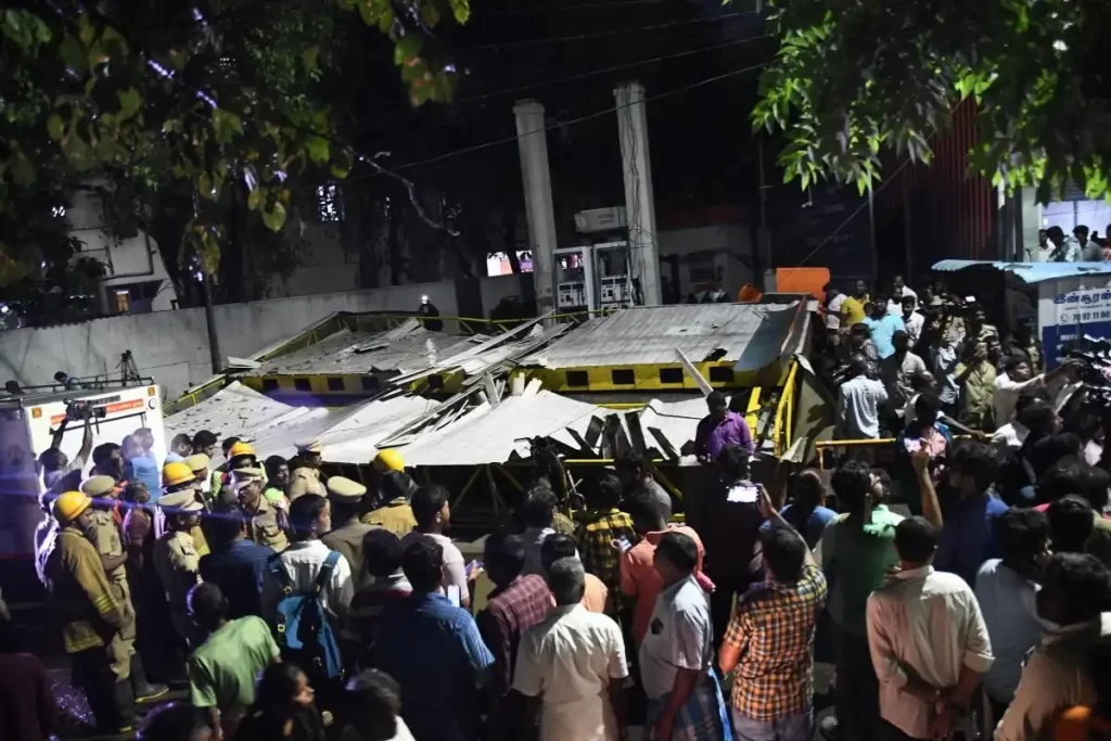 சென்னை சைதாப்பேட்டையில் பெட்ரோல் பங்க் மேற்கூரை சரிந்து விழுந்த விபத்தில் சிக்கி ஒருவர் பரிதாபமாக உயிரிழந்தார்.