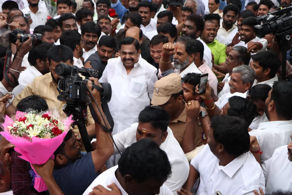 சென்னை ராயப்பேட்டையில் உள்ள தலைமை செயலகத்தில் நேற்று (நவ.21) மாலை அ.தி.மு.க. மாவட்ட செயலாளர்கள் கூட்டம் அக்கட்சியின் பொதுச் செயலாளர் எடப்பாடி பழனிசாமி தலைமையில் நடைபெற்றது.