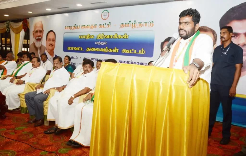 தமிழ்நாடு பா.ஜ.க. பிரமுகர்கள் கூட்டத்தில் கலந்து கொண்டு பேசிய மாநில பா.ஜ.க. தலைவர் அண்ணாமலை, வெற்றி பெறும்வரை ஓய்வு என்பதே கிடையாது என்று திட்டவட்டமாக தெரிவித்தார். சென்னை அமைந்தகரையில் உள்ள தனியார் மண்டபத்தில் தமிழ்நாடு பா.ஜ.க. நிர்வாகிகள் கூட்டம் இன்று (அக்.5) மாநில தலைவர் அண்ணாமலை தலைமையில் நடைபெற்று வருகிறது. ஏற்கனவே கடந்த 3ம் தேதி இக்கூட்டம் நடைபெறும் என்று அறிவிக்கப்பட்ட நிலையில் திடீரென்று ஒத்தி வைக்கப்பட்டது. இன்று கூடிய கூட்டத்தில் தமிழக பா.ஜ.க. தலைவர் அண்ணாமலை […]