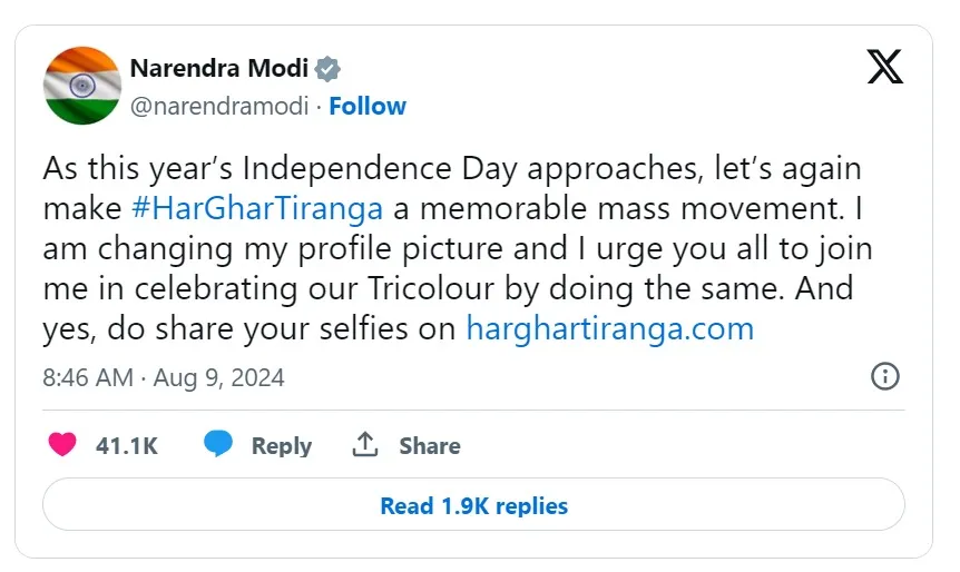சுதந்திர தினம்: பிரதமர் மோடி மக்களுக்கு புது வேண்டுகோள்!