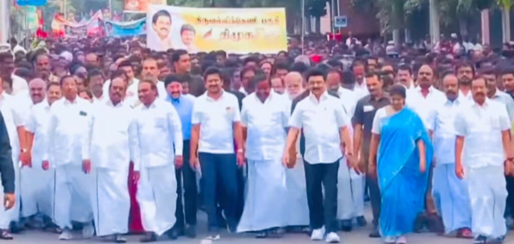 ஸ்டாலின் 3 கி.மீ. வாக்கிங். உடல்நிலை வதந்திக்கு அமைதிப் பேரணி பதிலடி
