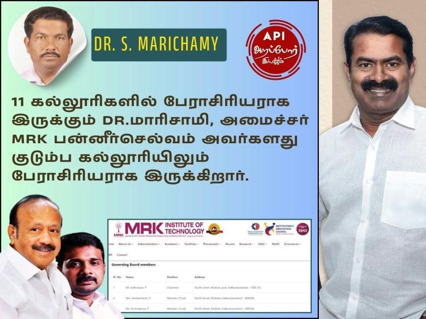 அண்ணா பல்கலைக்கழகத்தில் ஒரே பேராசிரியர் பல்வேறு கல்லூரிகளில் பணிபுரியும் ஊழலை அறப்போர் இயக்கம் அம்பலபடுத்தியிருந்தது. இதனை கண்டறிய குழு அமைக்கப்படும் என்று அறிவிப்பு செய்திருந்தாலும், இதுவரை எந்த நடவடிக்கையும் எடுக்கப்படவில்லை. இந்த நிலையில் நாம் தமிழர் சீமான், ‘’அறப்போர் இயக்கம் வெளிக்கொண்டுவந்துள்ள அண்ணா பல்கலைக்கழக போலி பேராசிரியர்கள் நியமன ஊழல் பெரும் அதிர்ச்சி அளிக்கிறது. தொடர்ச்சியாகப் பல ஆண்டுகளாக நடைபெற்றுள்ள ஊழல் குறித்து விரைந்து நடவடிக்கை எடுக்காமல், வழக்கம்போல குழு அமைத்து கிடப்பில்போட்டுள்ள திமுக அரசின் மெத்தனப்போக்கு […]