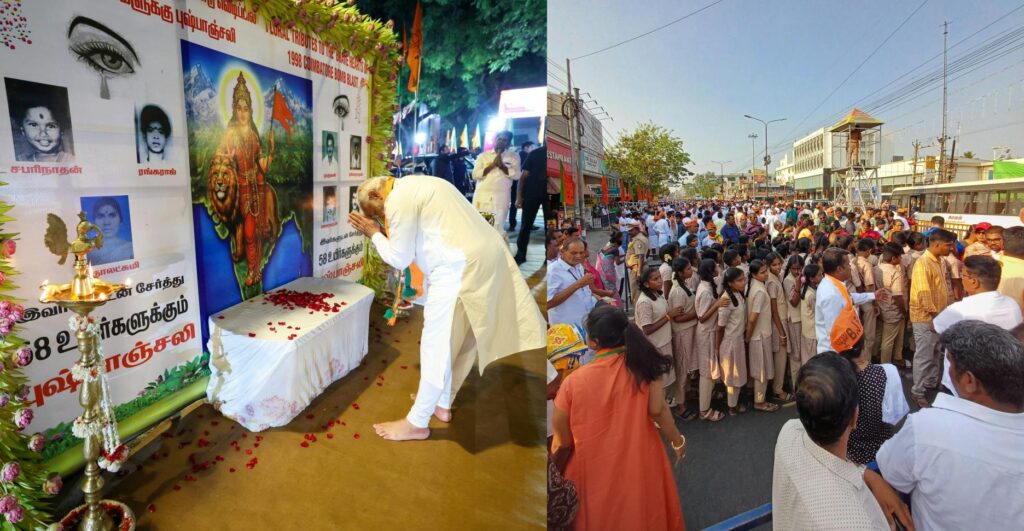பிரதமர் மோடியின் கோவை ரோடு ஷோவில் பள்ளி மாணவிகள்… குண்டு வெடிப்பில் இறந்தவர்களுக்கு அஞ்சலி சர்ச்சை