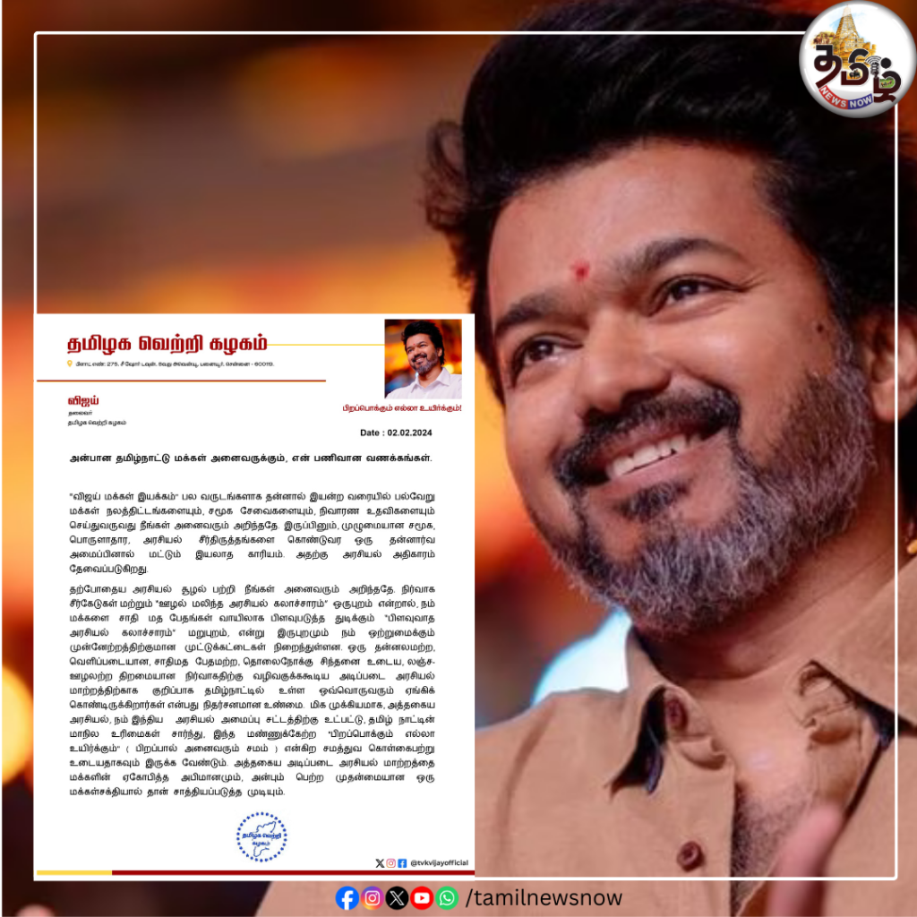 குங்குமப் பொட்டு வைத்துக்கொண்டு, தமிழக வெற்றி கழகம் என்ற பெயரில் விஜய் அறிவித்திருக்கும் கட்சிக்குப் பின்னே அமித் ஷாவின் தேர்தல் கணக்கு இருப்பதாக தகவல்கள் வெளியாகியுள்ளன. மக்களுக்கு பாதிப்பு ஏற்படுத்திய எந்த ஒரு விஷயம் குறித்தும் இதுவரை நடிகர் விஜய் கருத்து கூறியது இல்லை, ஒரே ஒரு மக்கள் போராட்டத்தில் கூடகலந்துகொண்டது இல்லை. ஒரே ஒரு பிரஸ் மீட் வைத்து செய்தியாளர்களை சந்தித்தது இல்லை. இந்த நிலையில், ஒரு புதிய படத்தின் அறிவிப்பு போன்று தமிழக வெற்றிக் […]