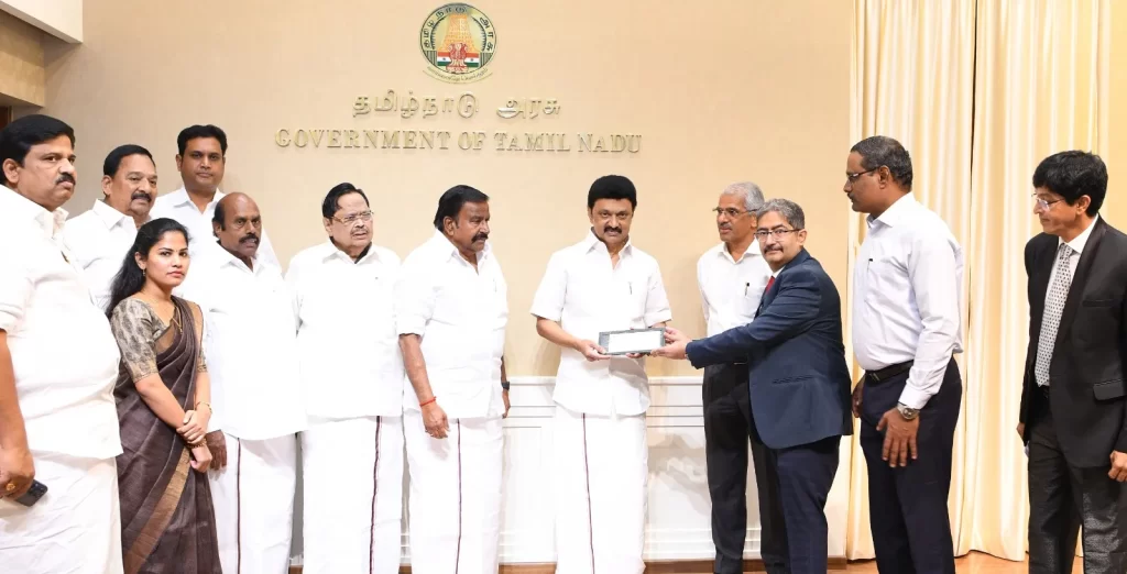 தமிழக அரசின் பங்கு ஈவுத்தொகை ஒப்படைப்பு! அமைச்சர் கே.என்.நேரு வழங்கினார்!