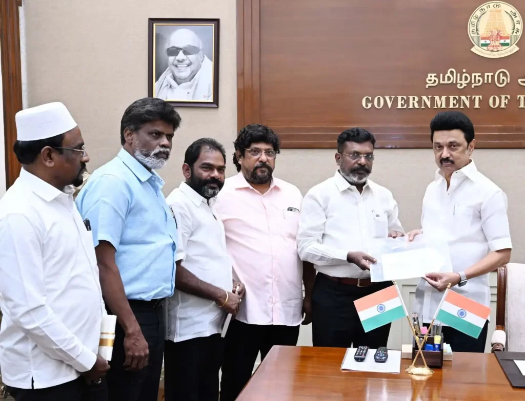 திராவிடர் கழகத் தலைவர் கி.வீரமணியின் 91வது பிறந்தநாளை முன்னிட்டு முதலமைச்சர் மு.க.ஸ்டாலின் அவரது இல்லத்திற்கு நேரில் சென்று பொன்னாடை போர்த்தி பிறந்தநாள் வாழ்த்துக்களை தெரிவித்துக் கொண்டார். திராவிடர் கழகத் தலைவர் கி.வீரமணியின் 91வது பிறந்தநாள் இன்று கொண்டாடப்பட்டு வருகிறது. இதனை முன்னிட்டு முதலமைச்சர் மு.க.ஸ்டாலின், கி.வீரமணியின் இல்லத்திற்கு நேரில் சென்று பொன்னாடை போர்த்தி புத்தகம் வழங்கி பிறந்தநாள் வாழ்த்துக்களை தெரிவித்துக் கொண்டார். இந்நிகழ்வின் போது அமைச்சர் மா.சுப்பிரமணியன், ஜெகத்ரட்சகன் எம்.பி., திராவிடர் கழக பொதுச் செயலாளர் வீ.அன்புராஜ், […]