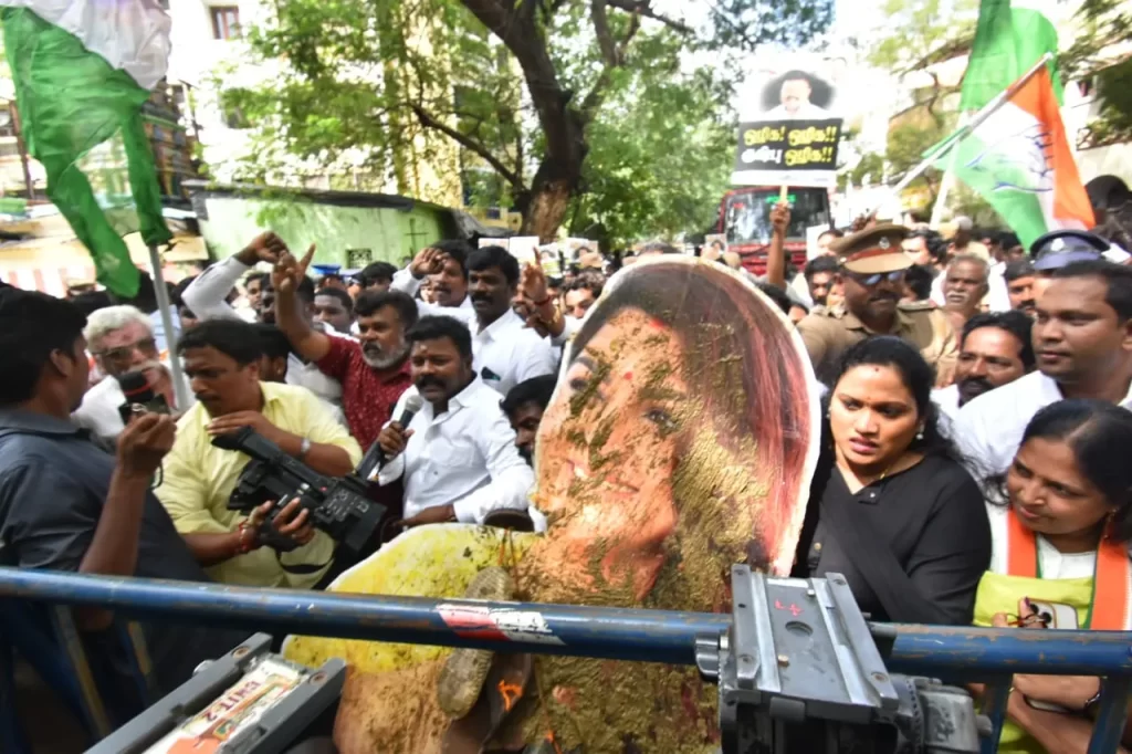 குஷ்புவின் புகைப்படத்தை செருப்பால் அடித்து போராட்டம்! காங்கிரஸ் கட்சியினர் கைது!