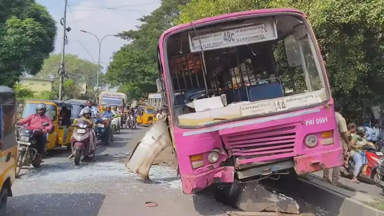 சென்னையில் பரபரப்பு! சென்டர் மீடியனில் மோதி நின்ற பேருந்து!