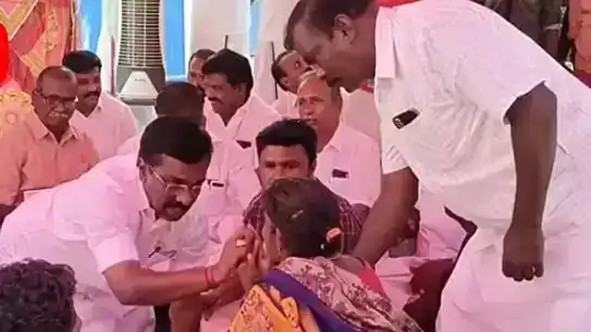 எம்.எல்.ஏ. காலில் விழுந்து கதறிய பெண்! ஏன் தெரியுமா?