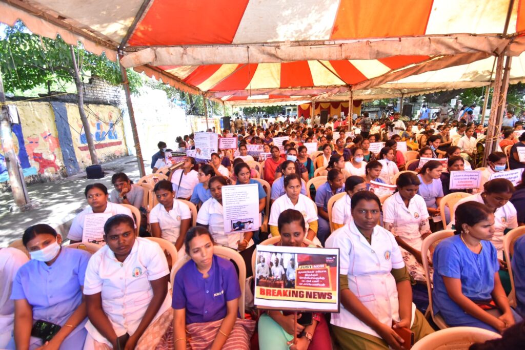 ஸ்தம்பித்து போன வள்ளுவர் கோட்டம்! பணி நீக்கம் செய்யப்பட்ட செவிலியர்கள் உண்ணாவிரதம்!