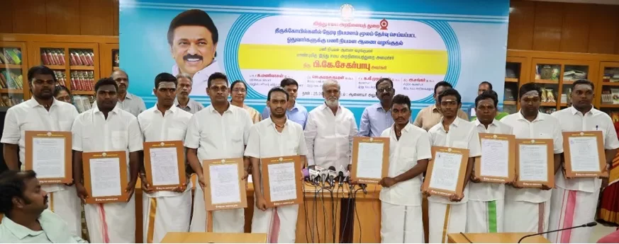 5 பெண் ஓதுவார்களுக்கு பணி நியமன ஆணை! அமைச்சர் சேகர்பாபு பெருமிதம்!