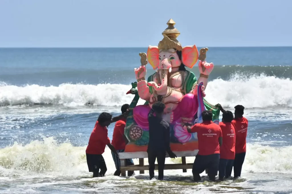 பட்டினப்பாக்கம் கடலில் கரைக்கப்பட்ட விநாயகர் சிலைகள்! அரிய புகைப்படங்கள்!