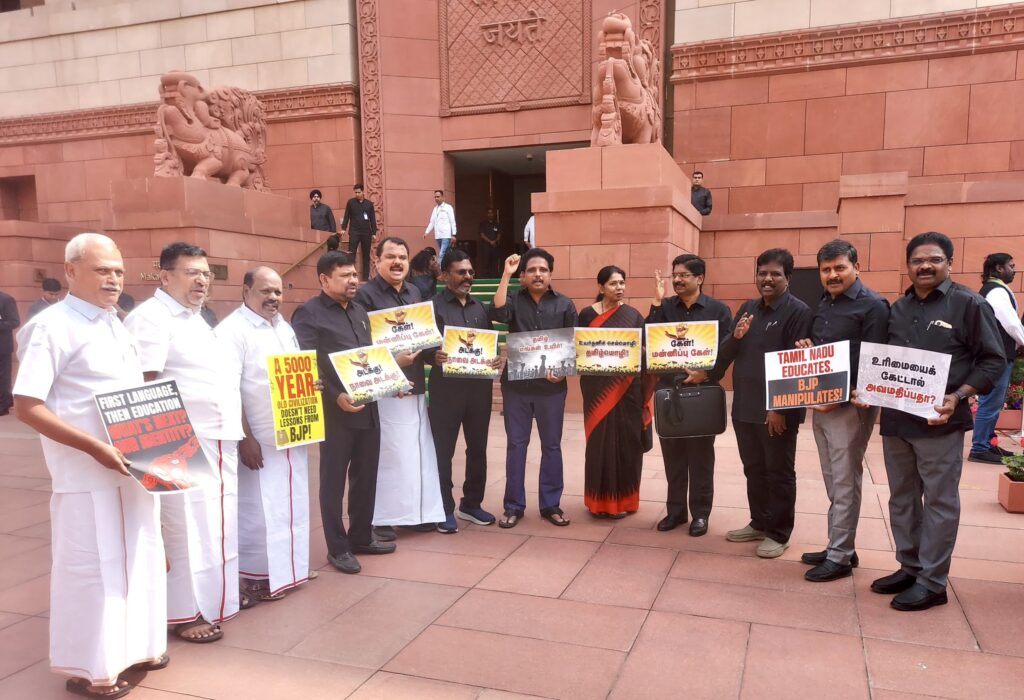 நாடாளுமன்றத்தில் தி.மு.க. எம்.பி.க்கள் போராட்டத்தை ஆரம்பிச்சுட்டாங்க… இதுக்குத்தான் டெல்லி போனாங்களா..?