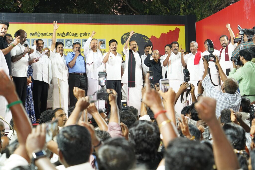 மும்மொழிக் கொள்கையை பிறமாநிலங்கள் ஏற்கும் போது தமிழ்நாடு மட்டும் ஏற்க மறுப்பது ஏன் என்று அமைச்சர் தர்மேந்திர பிரதான் எழுப்பிய கேள்வியால் தமிழகம் முழுக்க பற்றி எரிகிறது. தேசிய கல்விக்கொள்கை என்ற பேரில் இந்தியை திணிக்க பல வழிகளிலும் முட்டுக்கட்டை போடுவதுடன் தமிழ்நாட்டிற்கு வர வேண்டிய 2000 கோடியை கொடுக்காத பா.ஜ.க. அரசுக்கு எதிராக கடும் கண்டனம் எழுந்துள்ளது. இது குறித்து முதல்வர் ஸ்டாலின், “They have to come to the terms of the […]