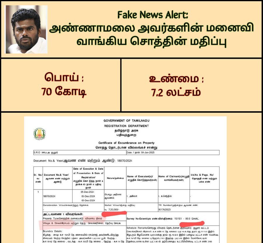 அண்ணாமலை மனைவி வாங்கிய சொத்து மதிப்பு 70 கோடியா… 7 லட்சமா..? விறுவிறு மோதல்
