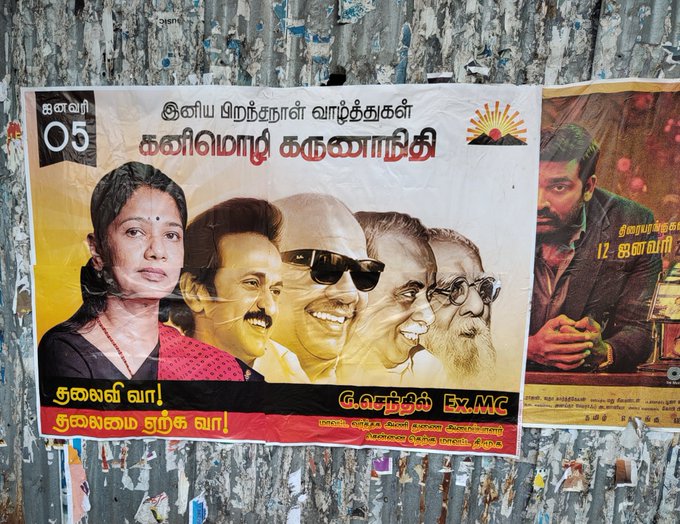 தலைவி வா… தலைமை ஏற்க வா. கனிமொழி பிறந்த நாள் போஸ்டர் யுத்தம்