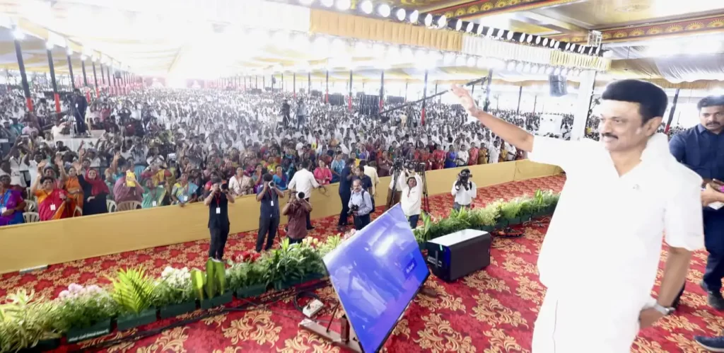 திருப்பூரில் காங்கேயம் படியூர் அருகே நேற்று (செப்.24) மேற்கு மண்டல கழக வாக்குச்சாவடி பொறுப்பாளர்கள் பயிற்சி பாசறை கூட்டம் நடைபெற்றது. இதில் முதலமைச்சர் மு.க.ஸ்டாலின், அமைச்சர்கள், தி.மு.க. மூத்த நிர்வாகிகள் உள்ளிட்டோர் கலந்து கொண்டனர்.