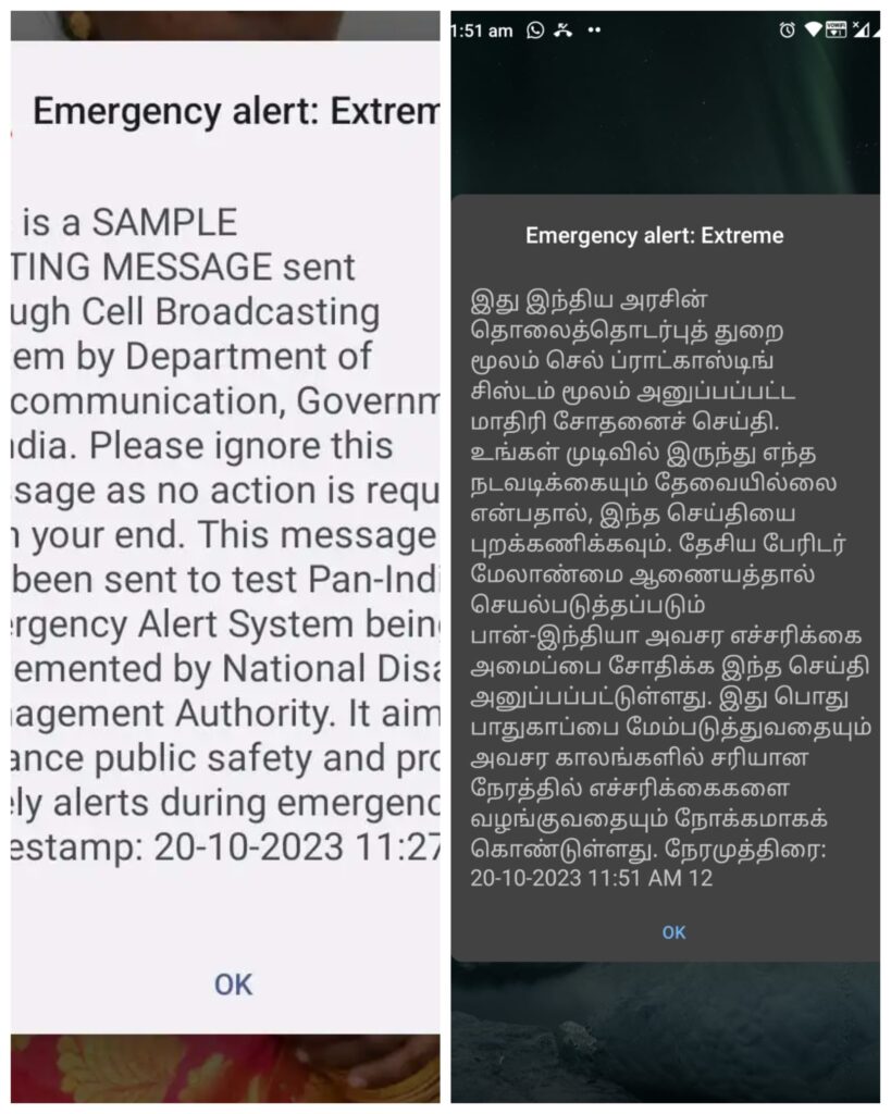 ஏர்டெல், ஜியோ உள்ளிட்ட செல்போன் சேவைகளை பயன்படுத்துவோர்களின் செல்போன்கள் இன்று காலை 11.27 மணியளவில் எம்ர்ஜென்சி அலர்ட் என்ற பெயரில் ஒலிக்க ஆரம்பித்தது. இந்த எச்சரிக்கை ஒலி தன்னுடைய செல்போனில் மட்டும்தான் வருகிறது என்று நினைத்துக் கொண்டிருந்தவர்களுக்கு அடுத்தடுத்த செய்தி என்னவென்றால் ஒரே நேரத்தில் லட்சக்கணக்கானவர்களின் செல்போனில் ஒலித்தது.