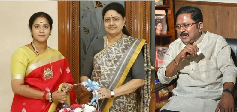 நடந்த ஆலோசனைக் கூட்டத்தில் அமமுக மாணவர் அணி செயலாளராக இருந்த ஜீவிதா நாச்சியார் கலந்து