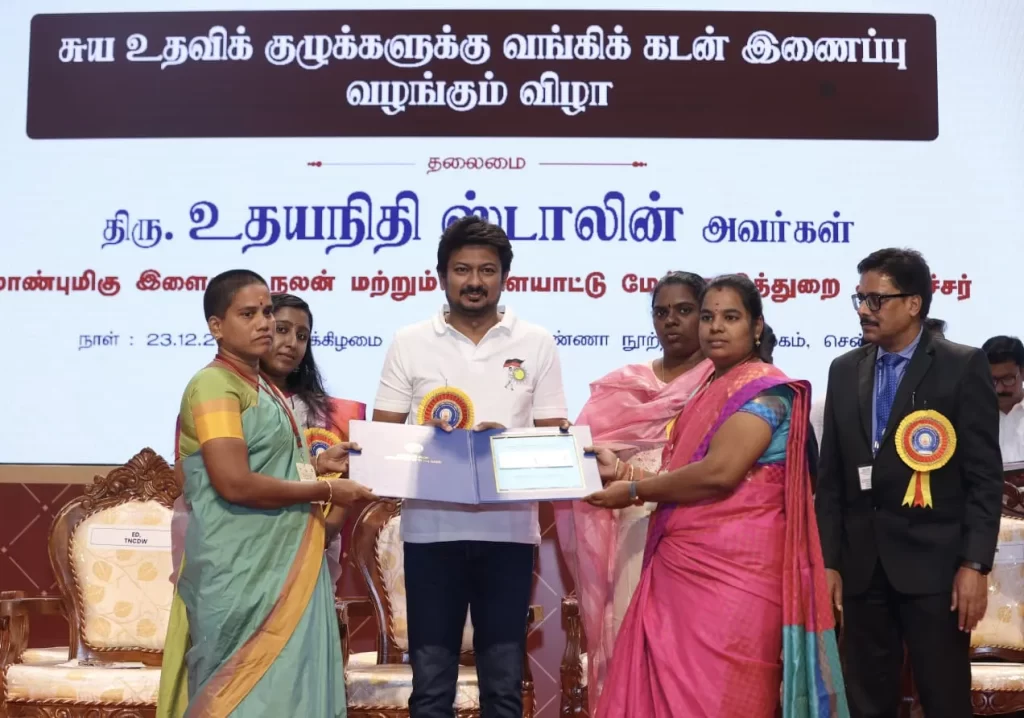 நகர்ப்புற மகளிர் சுய உதவிக்குழுக்களைச் சேர்ந்த மகளிருக்கு ரூ.125.50 கோடி மதிப்பிலான வங்கிக்கடன் இணைப்பை அமைச்சர் உதயநிதி வழங்கி அவர்களுக்கும் ஊக்கமளிக்கும் வகையில் பேசினார்